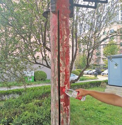 9月5日下午,新京報記者在迎喜家園小區探訪時看到,小區內部分區域雜草叢生,數棵枯死的樹木還“挺立”在綠化區域內,小區內的涼亭支柱也出現了較大的裂縫,部分路燈桿已經損壞,部分燈泡已經不見了。此外,部分樓棟的外牆磚已經出現了小面積的脫落。