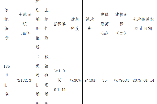 資料显示,該地塊編號為津濱生轉讓(掛)2020-3號,位於中新天津生態城南部片區,東至規劃用地邊界,南至和睦路,西至中天大道,北至規劃用地邊界。佔地面積72183㎡,計容建築面積79684㎡。起始價66867萬元,最高限價100300萬元,建築密度≤30%,率≥40%,建築高度35米。