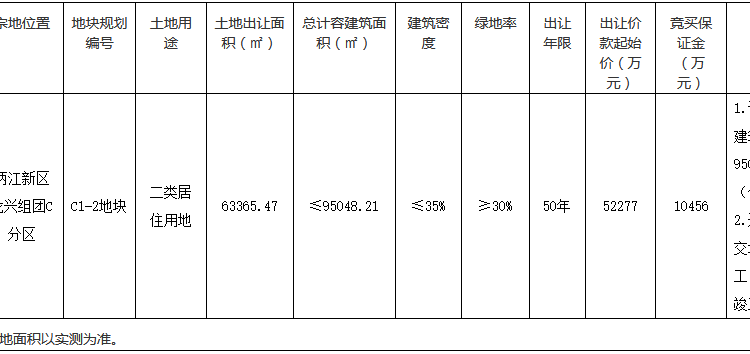 資料显示,該地塊編號為20163,位於兩江新區龍興組團C分區。出讓面積63365.47㎡,起始價52277萬元,競買保證金10456萬元,建築密度≤35%,率≥30%。