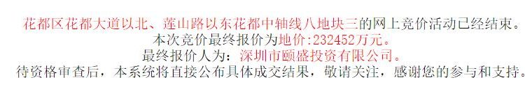 中國網地產訊 10月9日,廣州花都1宗住宅用地成功出讓,經過4輪競拍,地塊由深圳市頤盛投資有限公司(頤安)以232452萬元競得,溢價率1.3%,成交樓麵價10679元/㎡,實際樓麵價11862元/㎡。