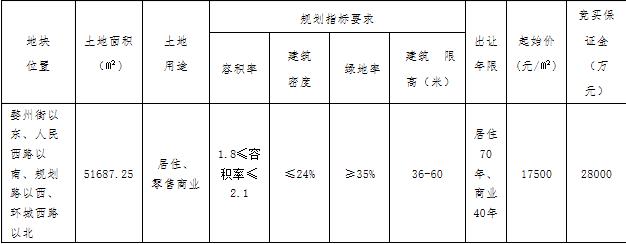 資料显示,該地塊編號為2020-60號,位於荊山路南、錦繡路西。出讓面積25157.37㎡,起始價2.265億元,建築密度≤20%,率≥35%,建築高度≤54米。