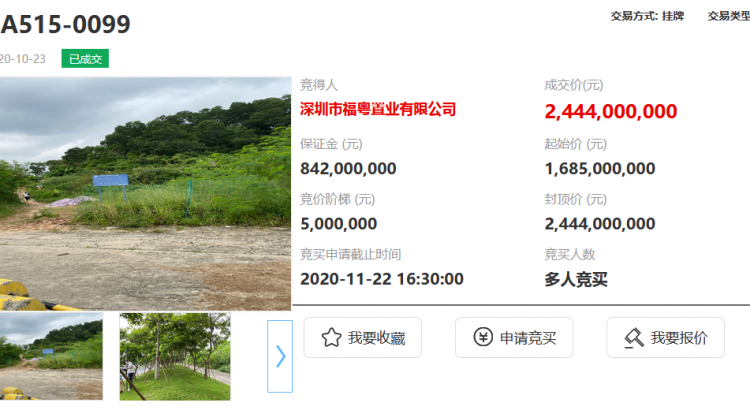 經過29輪競價,深圳市福粵置業有限公司(中國電建地產)以上限價格24.44億元競得A515-0099地塊,溢價率45.04%,配建人才房面積29000㎡。