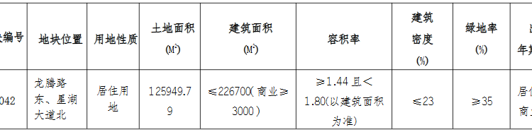 資料显示,該地塊編號為R20042,位於崇川區龍騰路東、星湖大道北。出讓面積12.59萬平,起始價23.26億元,建築密度≤23%,率≥35%,建築高度≤70米。