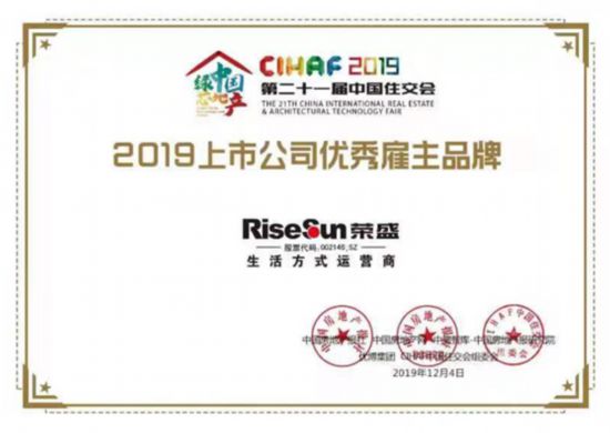 12月4日,由中國房地產報、中國房地產網、中房智庫聯合舉辦CIHAF2019第二十一屆中國住交會”在北京舉行。會上,榮盛發展獲評“2019上市公司優秀僱主品牌”,榮盛發展對人才的培養和優秀的僱主文化,獲得了業內的一致認可。