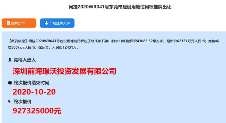 據土地出讓文件显示,地塊內配建市場建築(農產品交易)不少於3600平方米(含附屬式公廁和垃圾中轉站),用地面積不少於5000平方米。市場用房竣工驗收合格后,產權無償移交政府統一管理使用。