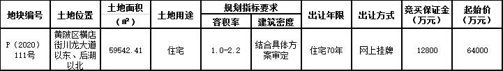 資料显示,該地塊位於黃陂區橫店街川龍大道以東、后湖以北。出讓面積59542.41㎡,起始價6.4億元,競買保證金1.28億元。