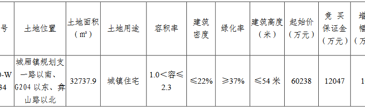 資料显示,該地塊編號為2020-WG-34,位於城廂鎮規劃支一路以南、G204以東、弇山路以北。出讓面積32737.9㎡,起始價60238萬元,競買保證金12047萬元,建築密度≤22%,率≥37%,建築高度≤54米。