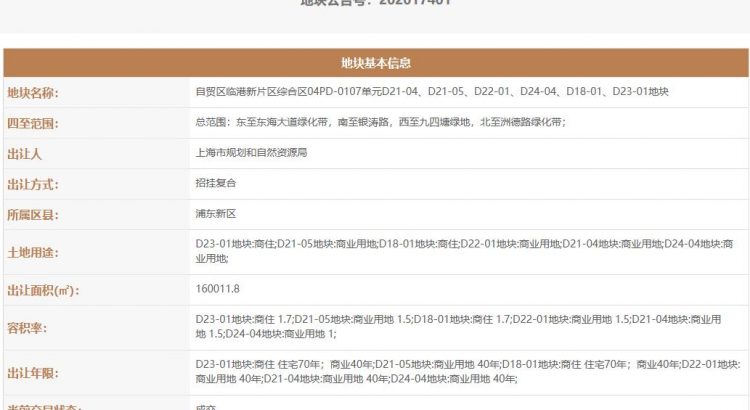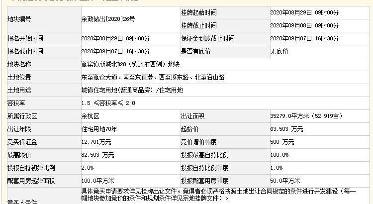 根據出讓條件,該地塊須配建不少於地上住宅建築面積5%比例的公租房,配建的公租房由受讓人同步建設,符合交付條件后整體無償移交杭州市餘杭區住房和城鄉建設局。