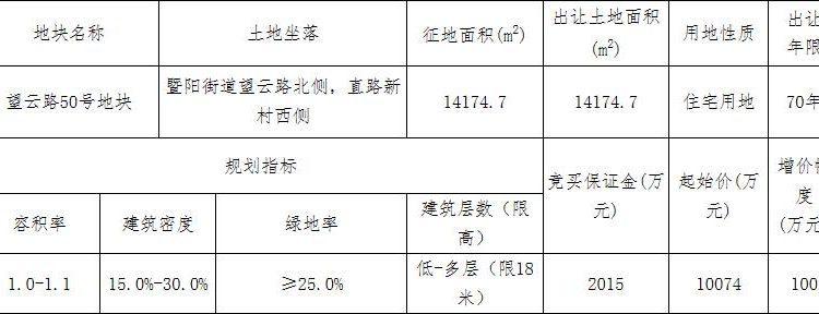 本宗地塊所建商品住房毛坯銷售均價不高於17500元/平方米,且毛坯銷售最高單價不高於19250元/平方米。如實施裝修銷售的,裝修價格不高於2500元/平方米。