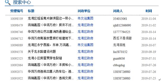 自辦理交付手續以來,龍灣區華鴻萬府多次被投訴 資料來源:溫州市網絡問政平台